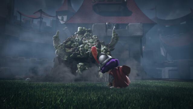 雷电飞龙一个闪电攻击击中了哥布林小屋,房子外边的墙壁瞬间脱落,也展示出了哥布林小屋内部真正的样子!原来哥布林小屋竟然是一大堆哥布林叠出来的!连两个建筑物上的角也是两个哥布林堪称瑜伽般的姿势搭建出来的。再回想一下游戏中哥布林小屋最后一个哥布林走出后,小屋就会碎掉,原来就是因为里面没有哥布林的支撑,小屋就成了一个豆腐渣工程,碎掉也就在清理之中了!意料之外,又在情理之中,这设计师的脑洞真的服了!