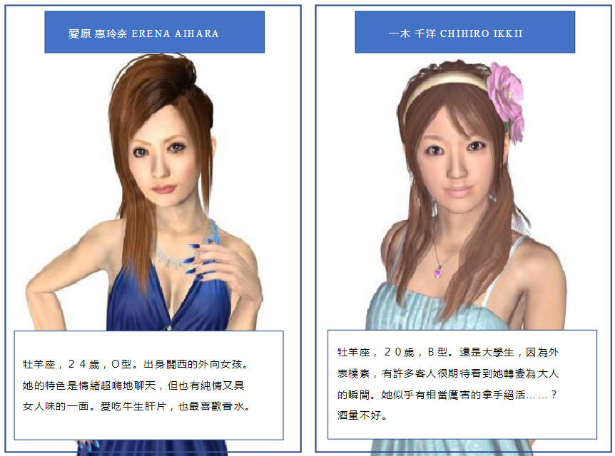 接下来继续介绍「培育公关小姐」小游戏中的3位小姐以外的7位小姐,她们都是基于在徵选中脱颖而出的实际原型人物制作。请尽情享受和原创角色不同的真实魅力。