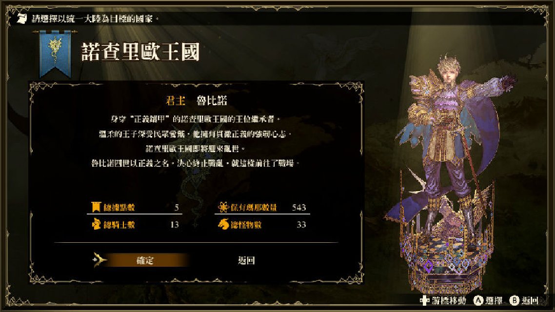 本次抢先体验版中,玩家将扮演位居大陆西北方的诺查里欧王国的君主---鲁比诺,玩家将在获得七个本国据点前,或是在十节期限内,尽情体验「主要模式」的乐趣。