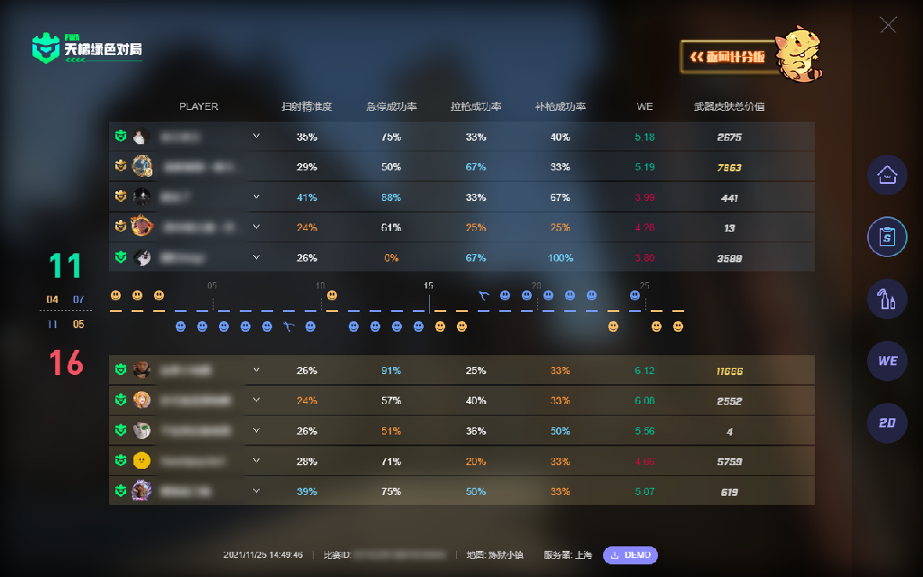 配合新赛季的开放,平台赛后板样式也将迎来突破性革新!除了专业详实的基础数据,更新增多项特色数据。想知道你本局内扫射的平均子弹命中率吗?急停、拉枪和补枪现在也有数据可以衡量,甚至对手/队友本局内使用过的武器皮肤总价值都能一览无余!