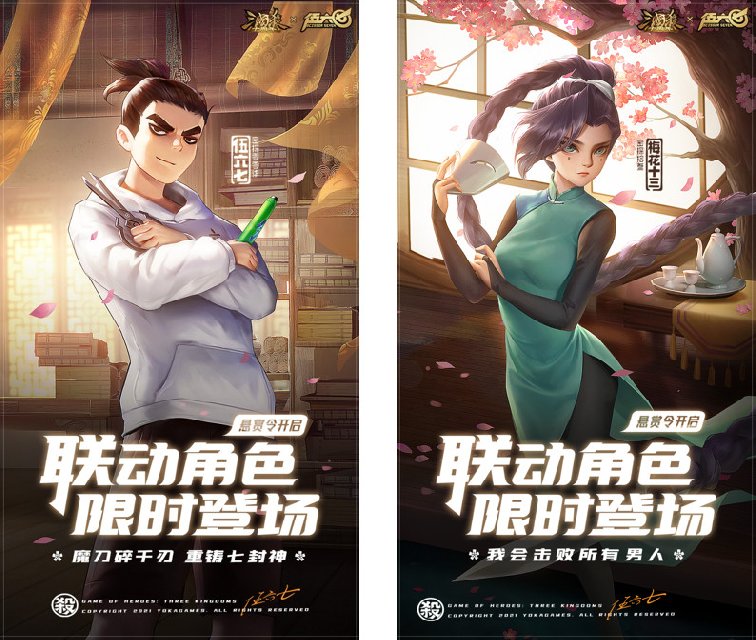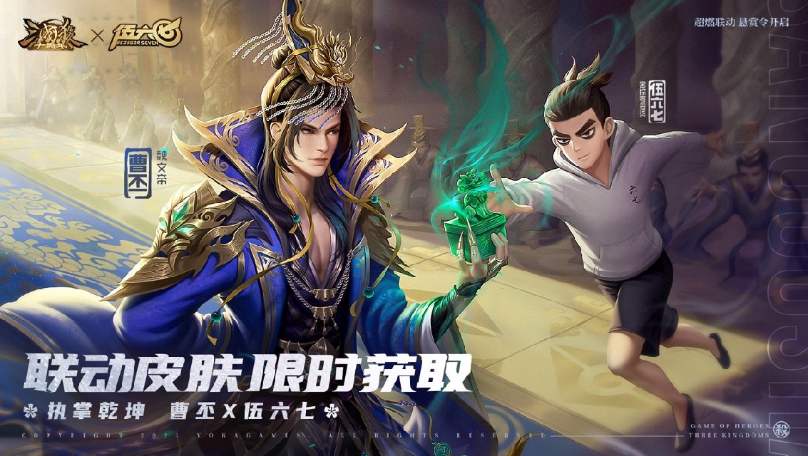 此外,本次联动还精心设计了【万年公主X梅花十三】和【曹丕X伍六七】的联动传说级皮肤,画面中梅花十三和万年公主并肩而战、伍六七扑向曹丕手中的玉玺,都不禁令人想象联动的精彩故事。并且【万年公主X梅花十三】传说联动皮肤和【梅花十三三国秀】通过限时登录或参与周年庆活动都能免费获得。