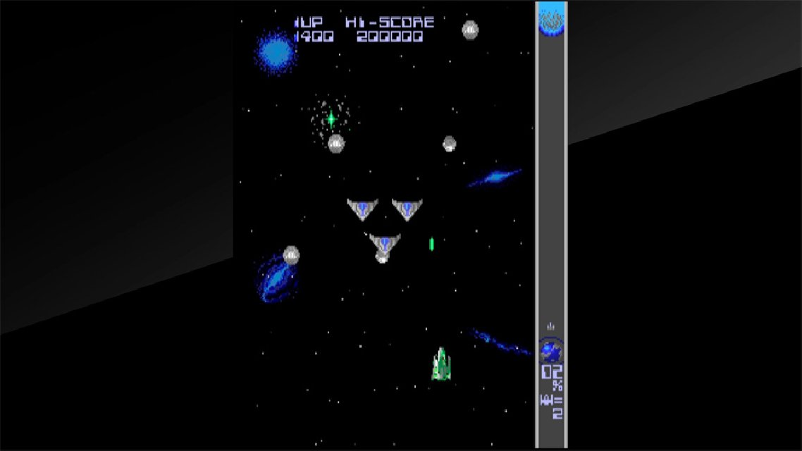 这是一款成为守护地球的飞行员,与从地图画面上逐渐进攻的敌方空军展开战斗(3D射击)或侵入敌方机动要塞(2D射击)的战略游戏,并透过《TAITO MILESTONES》首次移植为家用主机游戏。(1981年作品)