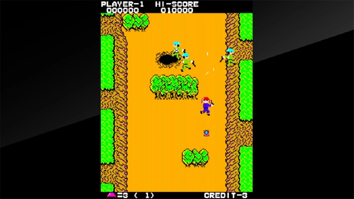 这是一款成为战场士兵使用手枪和手榴弹,为了通过关卡向敌阵前进的搞笑战争游戏。不仅可以衝进我军的车辆战斗,还能在山、草原、沙漠等多种舞台上进行激烈的枪战。(1982年作品)