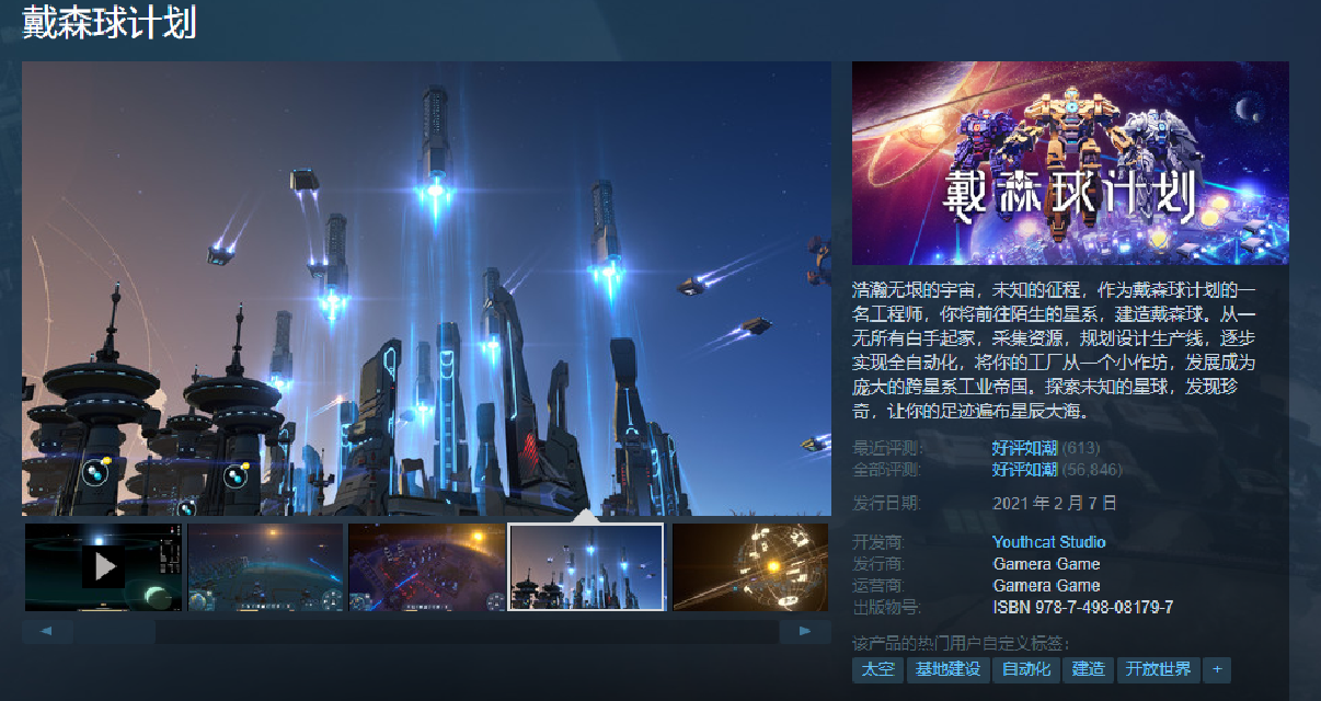 《戴森球计划》蒸汽平台商店页链接: