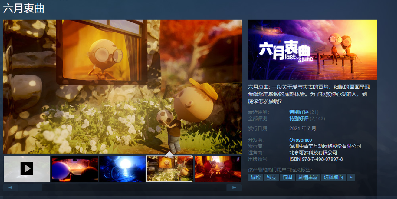 《六月衷曲》蒸汽平台商店页链接: