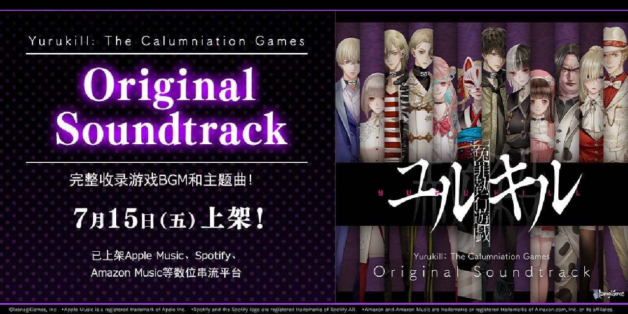 》(Yurukill: The Calumniation Games Original Soundtrack)于今天上架Apple Music和Spotify等全球各⼤数位⾳乐平台!