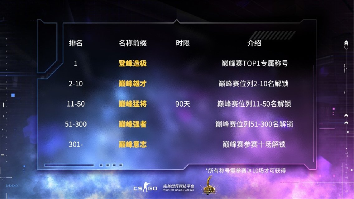 参赛资格:旧赛季(S8逐光疾驰)结束时达到天梯前2500名,或新赛季(S9)9月29日24:00时处于天梯前2500名的玩家,都将于9月30日收到巅峰赛邀请函。