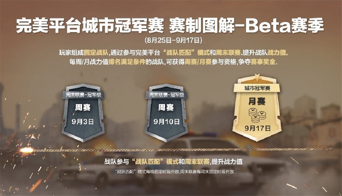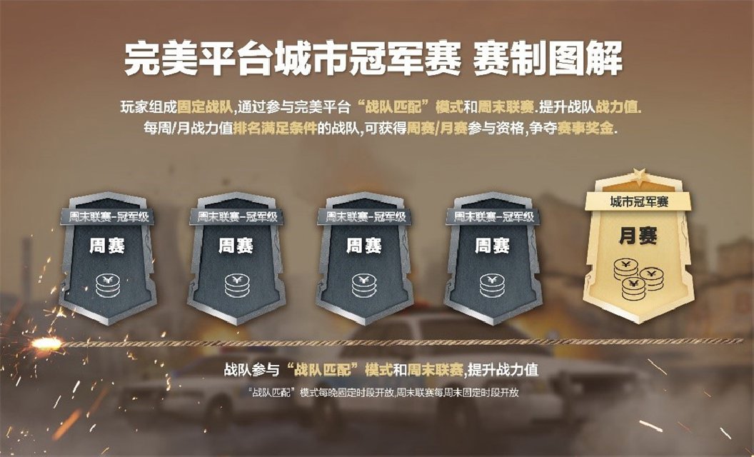 完美平台城市冠军赛新赛季即将正式揭幕。这是原先周末联赛的重装升级,玩家组成固定战队,在日常游戏(战队匹配模式和周末联赛)中提升战队战力值,战力值排名靠前的队伍就可获得以地区为单位的城市冠军赛-周赛(即周末联赛最高等级——冠军级)的参赛资格;周赛中脱颖而出的队伍则会晋级到每个地区的城市冠军赛-月赛中,拿下丰厚现金奖励。