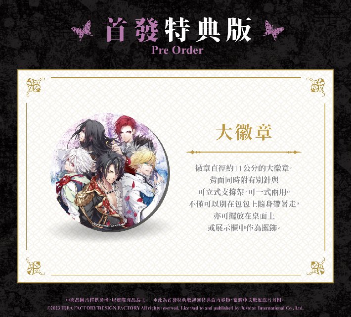 本次首批实体版本也将免费升级为“首发特典版”,并附赠亚洲中文版专属制作的小册子。除了主视觉插画外,也包含角色设定介绍、CG图等丰富内容,让华文圈的乙女玩家也能享受到独家的特典内容,更值得您购入珍藏。