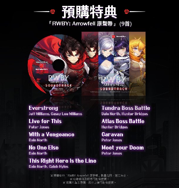 ※ 预购特典“RWBY: Arrowfell 原声带”数量有限,送完为止。
