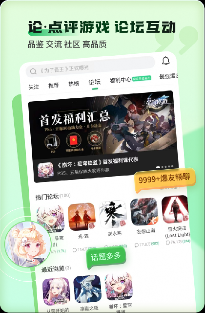 除了能够第一时间提供新游戏测试体验及畅玩通道,在好游快爆上,大家可以发表游戏评价,共建高品质游戏交流社区,与千万游戏爱好者交流心得,与开发者直接沟通、反馈游戏建议BUG。这里还有一手新游爆料信息、体验服预约提醒、实用攻略、游戏工具、有趣视频,助大家走向游戏发烧友之路。