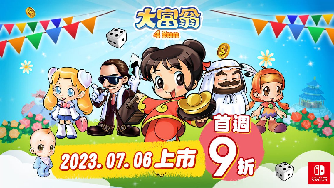 大宇资讯旗下知名益智派对类游戏《大富翁》,推出至今超过30余年,至今仍是许多玩家的童年回忆。以最广人所知、风靡全亚洲的《大富翁4》移植而成的《大富翁4 fun》Switch版,今日(6日)于Nintendo eShop上由星宇互动娱乐全球同步发行,正式售价为港币95元。
