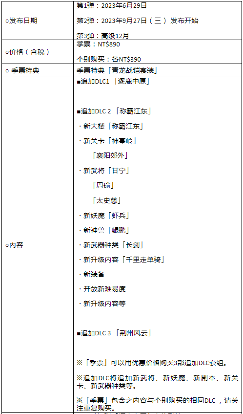 台湾光荣特库摩宣布,暗黑三国动作RPG 『卧龙:堕落王朝』(卧龙:苍天陨落)(PlayStation®5 /PlayStation®4 /Xbox Series X|S /Xbox One /Xbox Game Pass /Steam® /Windows商店),DLC第2弹在今天2023年9月27日(三)发布。