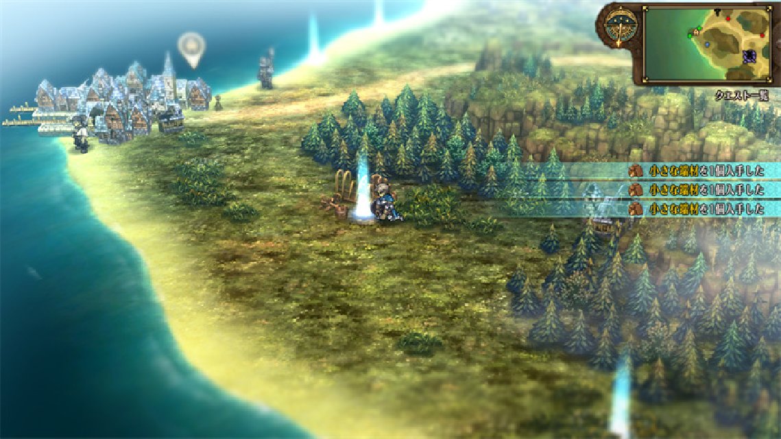 在大地图中的草丛、海边等地方可获得“采集品”。采集品可在向城镇交纳物资等情况时使用,尽可能多多采集吧。
