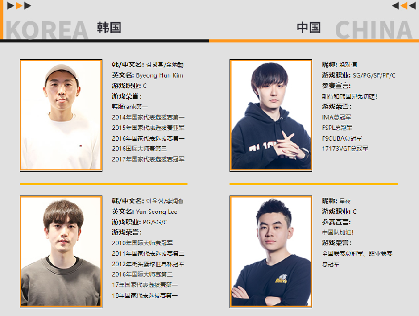此次中韩对抗赛韩国队派出的选手有韩国策划、实力颜值兼备的Kensur以及国服玩家熟知的韩国板王金炳勳,中国队派出的选手有天游策划、抗韩英雄绝对值以及实力女解说颜颜等,势必将会上演一场精彩的对决!赶快来为中国队加油吧!