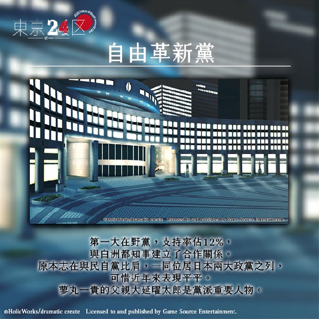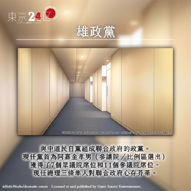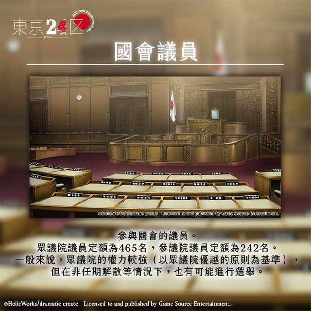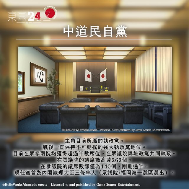 《东京24区 -祈-》以日本政坛为故事背景,因此游戏内不时会出现政治相关的词彙。为了让玩家能更清晰及简单地理解本作品的世界观,现在为各位介绍5个经常出现的关键字!