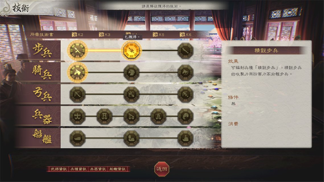 在本作,发展势力的“技术”就能在战场驱使更多的兵种或兵器,而都市的“技术”发展到一定程度后,可以获得“技术书”,使用“技术书”则可以让全体势力的技术更上一层楼。玩家可以预测未来可能发生的战役,自由选择要优先发展的技术。