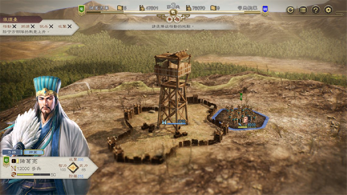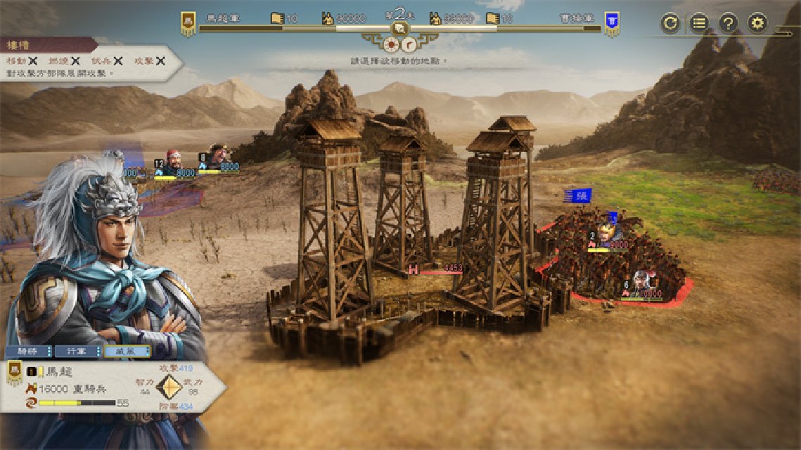 战斗地图上存在各种“建筑”,像是“橹”、“关”、“狼烟台”等防卫设施。防守方若能灵活运用拥有不同效果的“建筑”,即便碰到能力值较高的武将或是兵力较多的敌人,也有机会展开势均力敌的战斗。