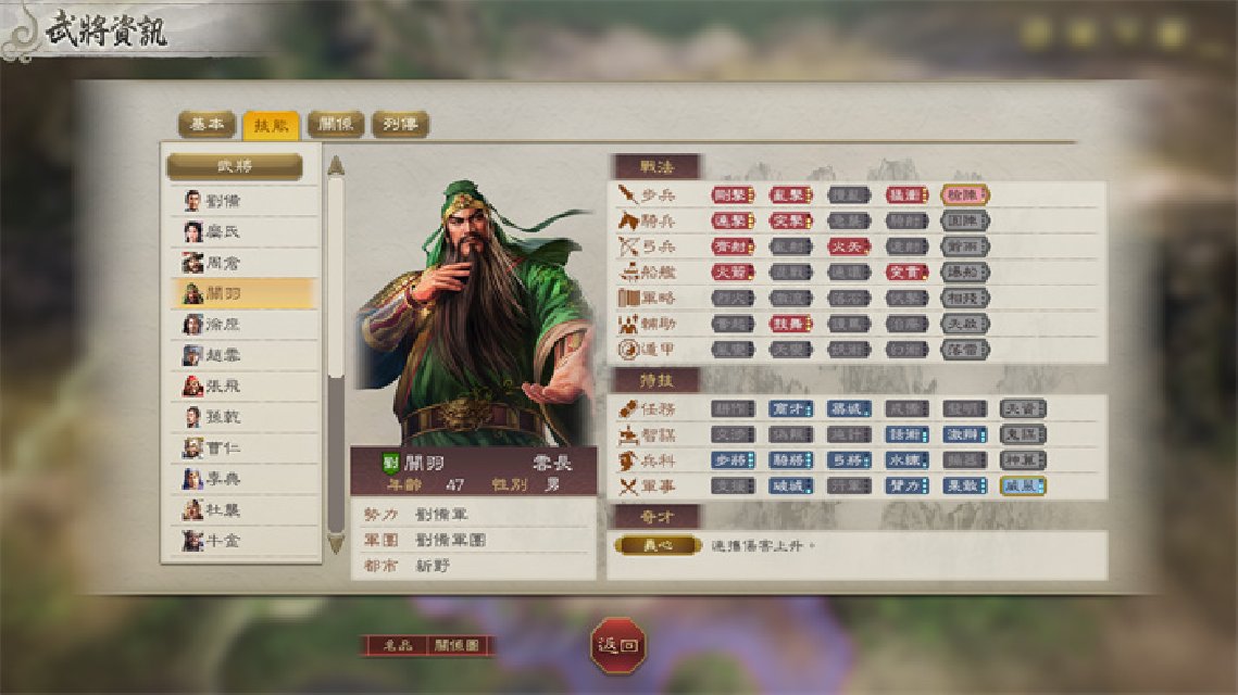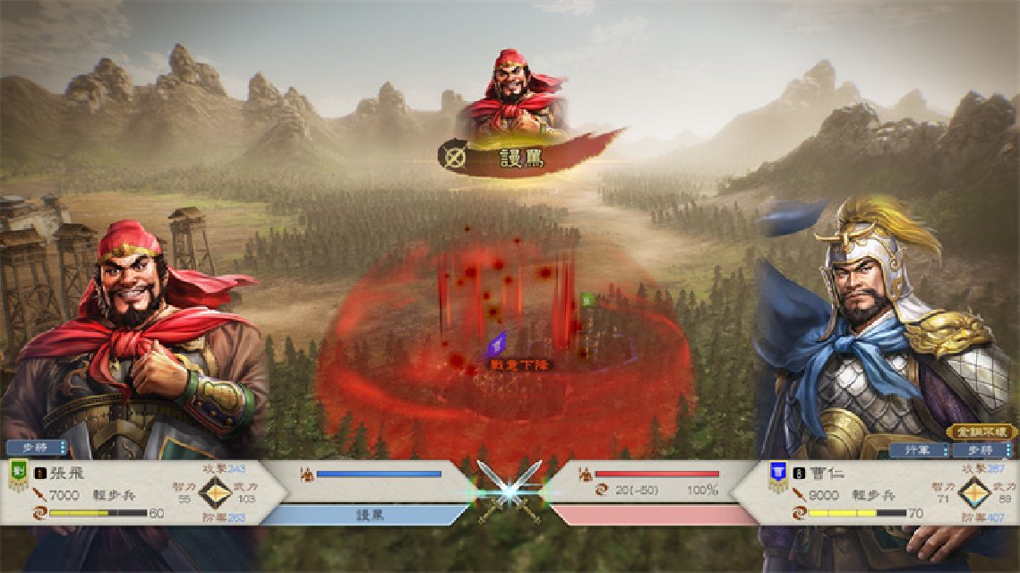 如前所述,战斗中存在著各种要素,像是影响范围广大的“策略”、关係亲密的武将会率领部队发动“连携”支援我方等,而透过运用“兵种”、“战法”等要素可以更有效地与敌人战斗;特别像是关羽这种拥有战斗相关“奇才”的武将,只要能巧妙地结合各种要素,就有可能产生横扫千军的戏剧化发展,根据玩家指挥调度的手腕,说不定还有机会再现如同“赤壁之战”传说般的精采逆转,这也是本作战斗系统的一大魅力。