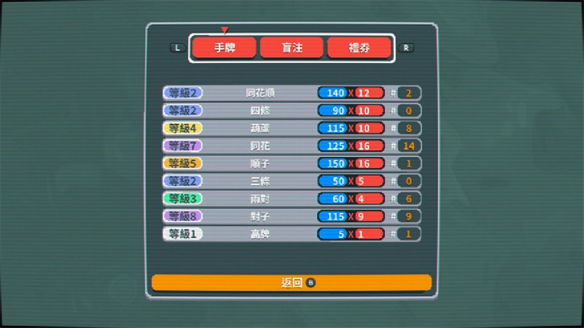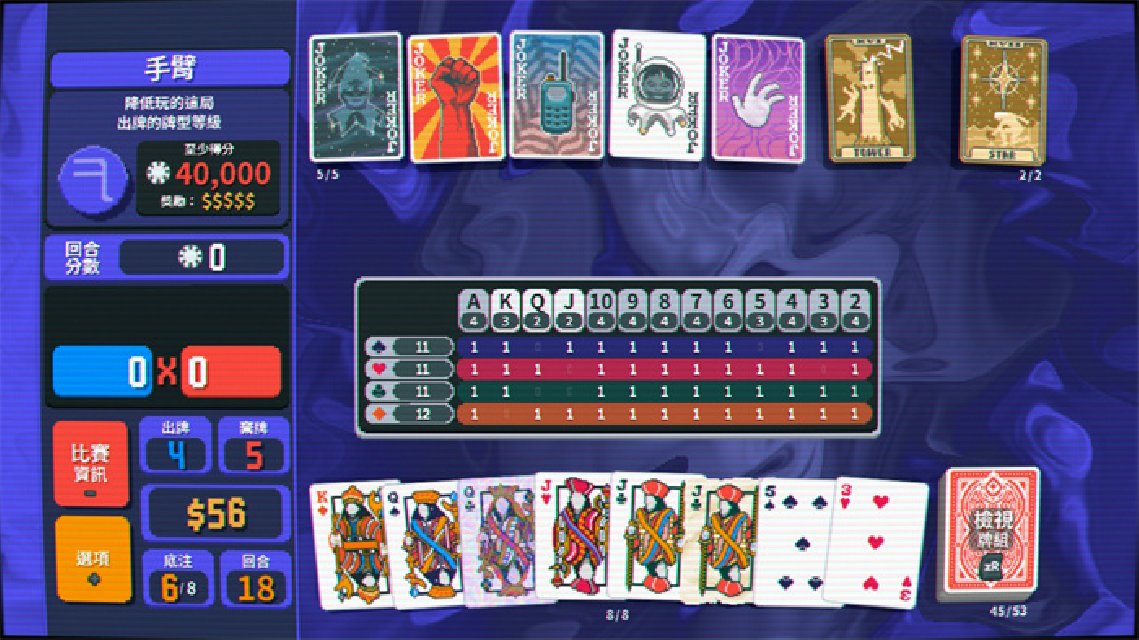 将有效的牌型组合与独特的小丑牌结合,就可以创造出各种连锁特殊效应和构筑牌组。赚取足够的筹码来通过盲注关卡,随著牌艺日渐精进,发现隐藏的奖金手牌和牌组。绞尽脑汁、发挥所有优势,才能晋级到魔王级BOSS盲打关卡,赢取最终赌注、稳赢胜利。