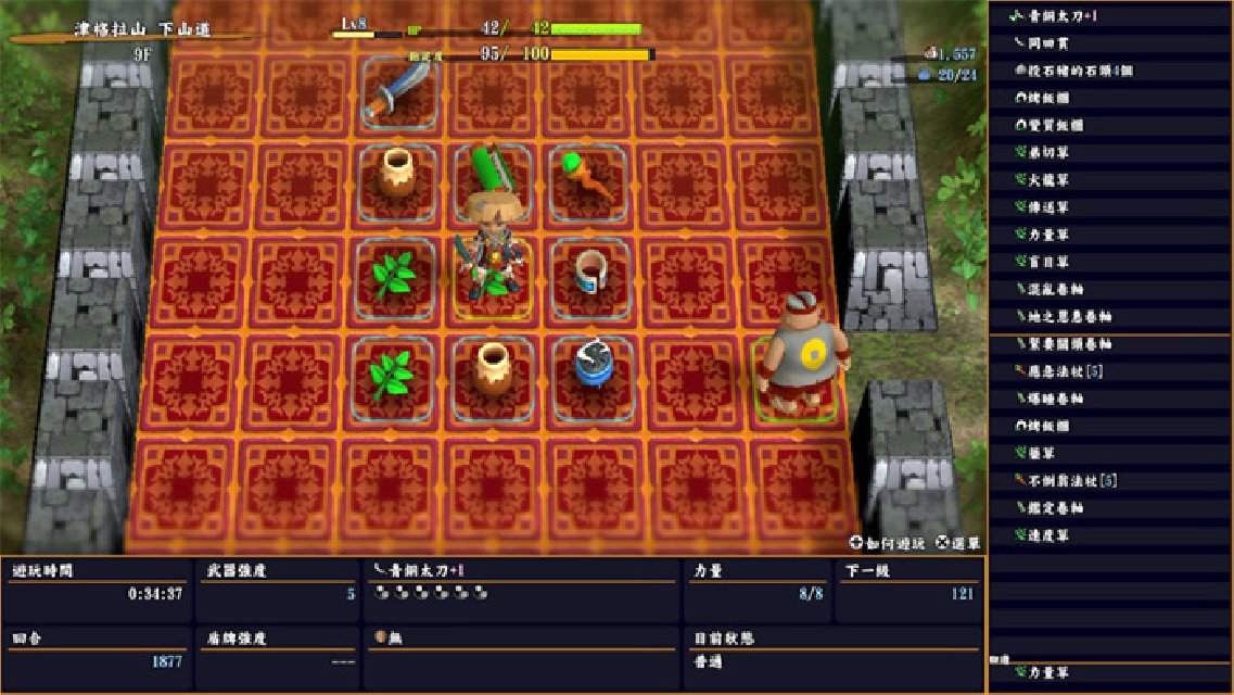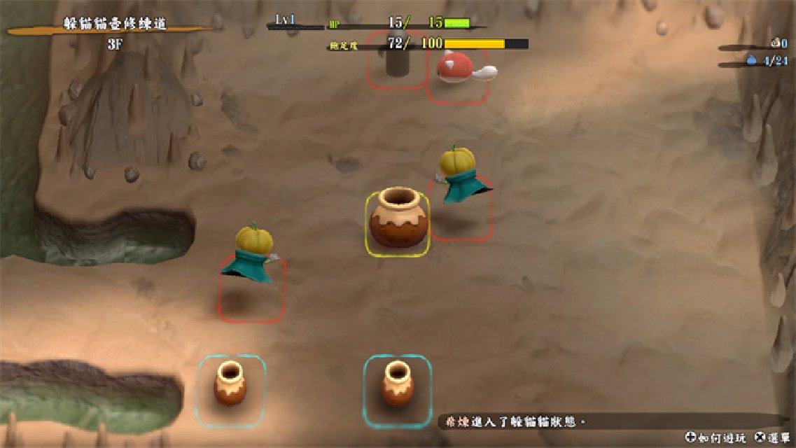 这座迷宫裡出现的道具十之八九都是“躲猫猫壶”。同时,即使打倒敌人也不会获得经验值,只能靠自己躲进壶中或者把怪物关进壶中渡过难关,往前推进。