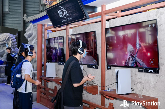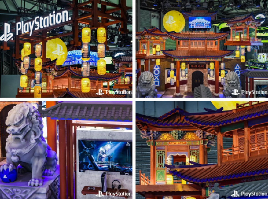PlayStation展台位于N1-G001展位,设计具有浓厚的东方情调,巧妙融合传统元素与游戏创新,重现一个砖瓦飞檐、雕梁画栋、恢弘壮丽的东方楼阁场景。游戏试玩区提供8款游戏体验,均为国产游戏。现场不仅是PS5的游戏体验空间,更是一场模糊现实与虚拟的东方奇幻天地,邀请玩家共度盛夏游戏狂欢,一起“决战游戏之巅”。