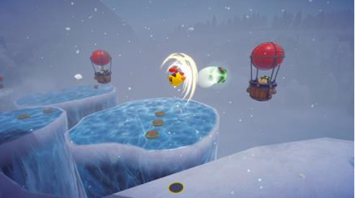 在森林关卡时利用弹簧床,雪山时则穿上溜冰鞋,而在大海关卡时,就轮到操作潜水艇射击,玩家将能以各式各样的动作攻略关卡。