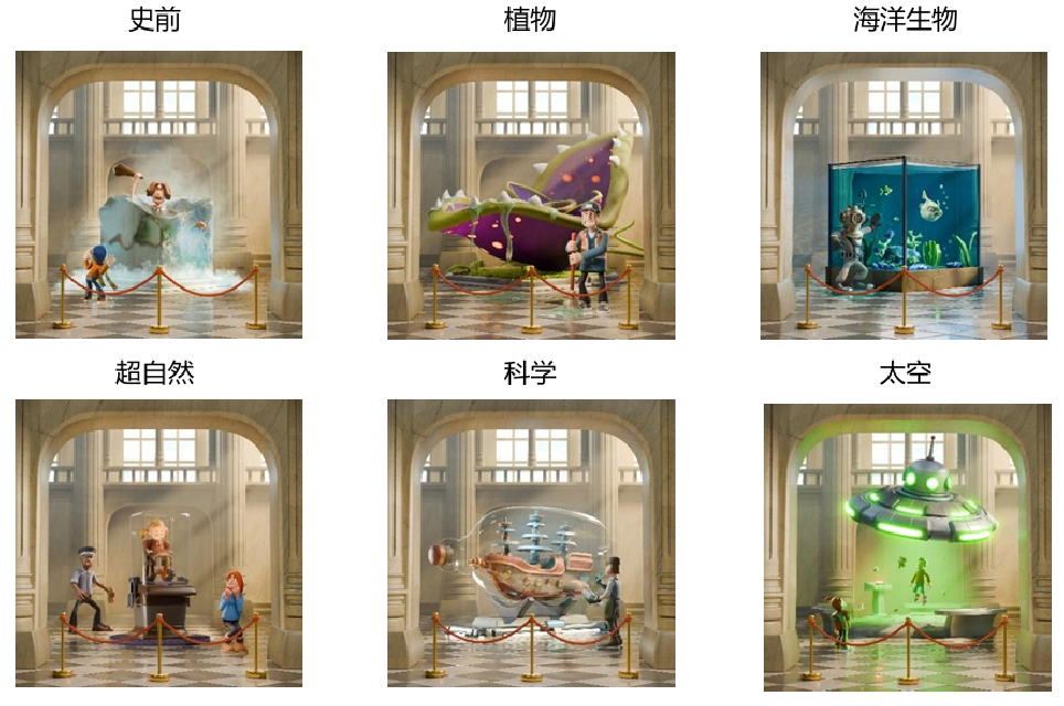 在海洋生物博物馆中可发现珍稀鱼类,在科学博物馆中可发现废弃实验室。通过探险地图不断寻找新的展示品,扩展各个主题的博物馆。从孩子到吸血鬼,各种各样的访客都会到访玩家亲手打造的博物馆。