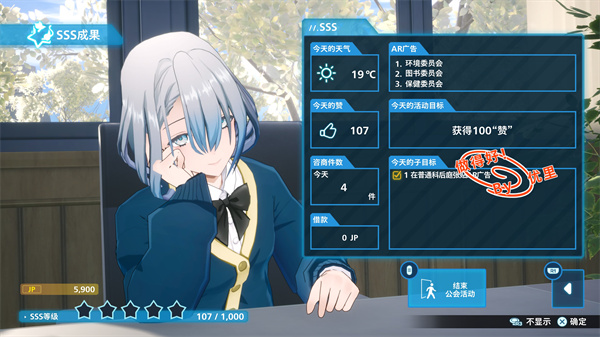 玩家既可以根据每日委托列表来完成各事项,也可以自己干自己的,满校园捡垃圾贴广告,只要积满规定数量的赞,当日社团活动便算完成。