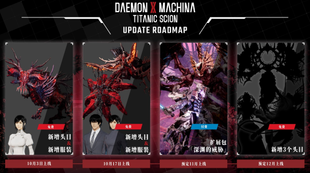 新头目登场的免费更新确定发布。官方网站已公开更新计划,第一弹将于 10 月 3 日推出。
