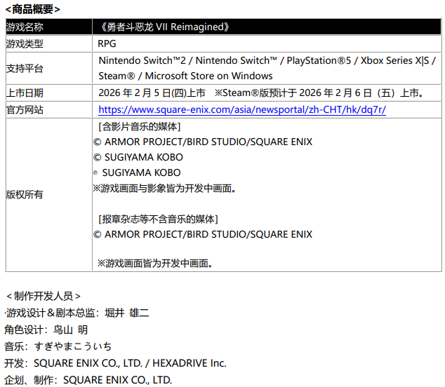 《勇者斗恶龙 VII Reimagined》确定于 2026 年 2 月 5 日(四)上市