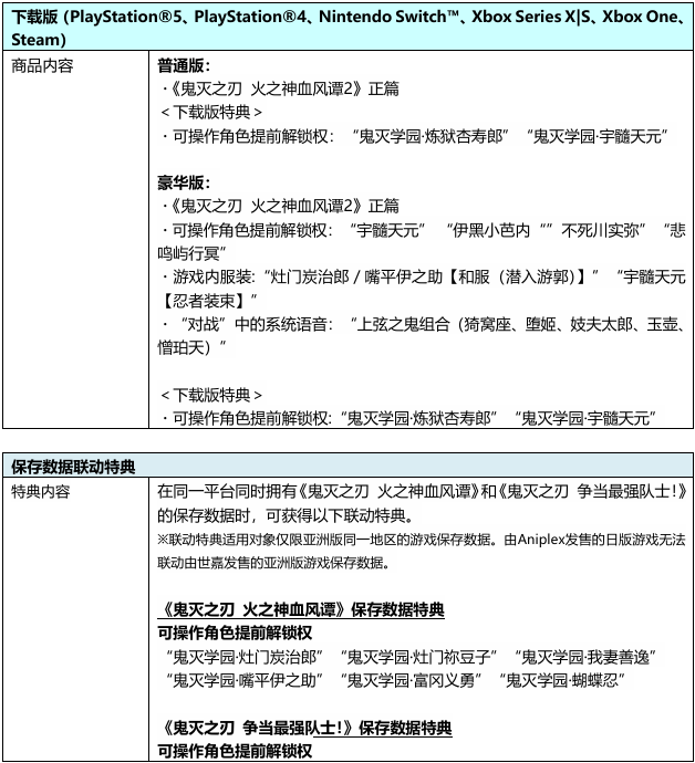 目前正在日本热映的“鬼灭之刃”最新剧场版中的登场角色,将可在对战模式“对战”中使用。这些角色将通过付费DLC追加。