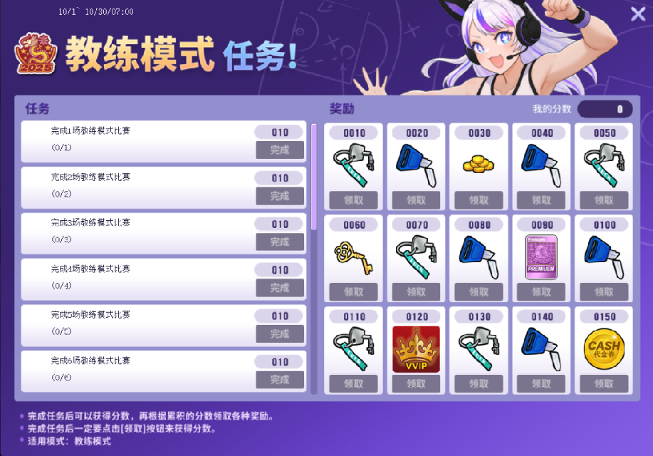 想要体验一个人操控3个角色是什么体验吗?赶快来体验教练模式吧~完成任务后可以获得分数,再根据累积的分数领取各种奖励。完成任务后一定要点击领取按钮来获得分数。除了以上精彩活动之外,还有超多精彩活动再等待各位FSer,大家可以留意官网活动专题以及即将上线的国庆活动日历,欣赏下全新的超5嘻哈披肩鞋子吧~