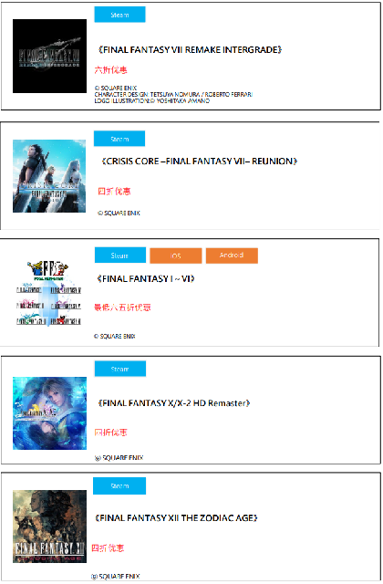 在本次优惠活动中,智能手机版和Steam®版热门作品同时参与优惠。