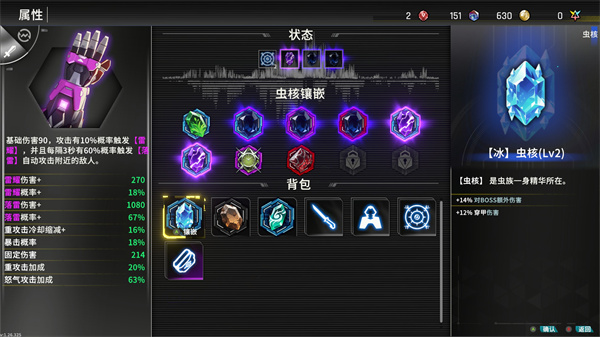 为了更爽快地通关,我们要做的就是凑齐同一个属性的顶级虫核,并在这个基础上刷取它们的词条,尽量让它们增强同一类属性,这样我们操纵的角色伤害才会越高。