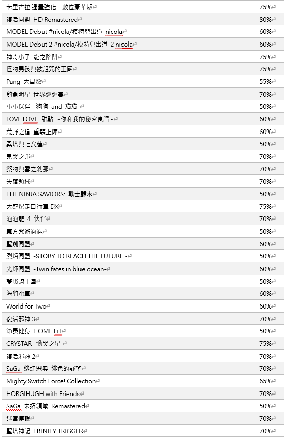 本次促销活动将在各数位商店(PlayStation Store、香港My Nintendo Store、Microsoft Store)进行