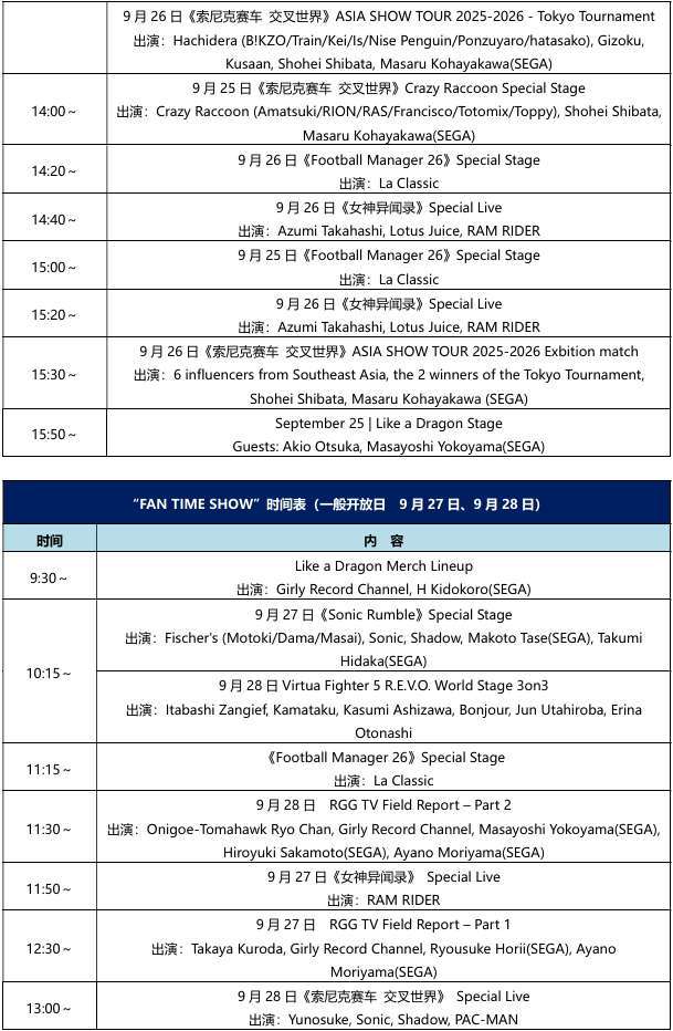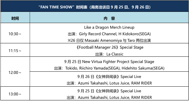 此外,随着《人中之龙》系列等参展资讯的发布,出展信息、赠品、舞台活动“FAN TIME SHOW”的日程表、以及商品售卖区的商品阵容也已一并更新。
