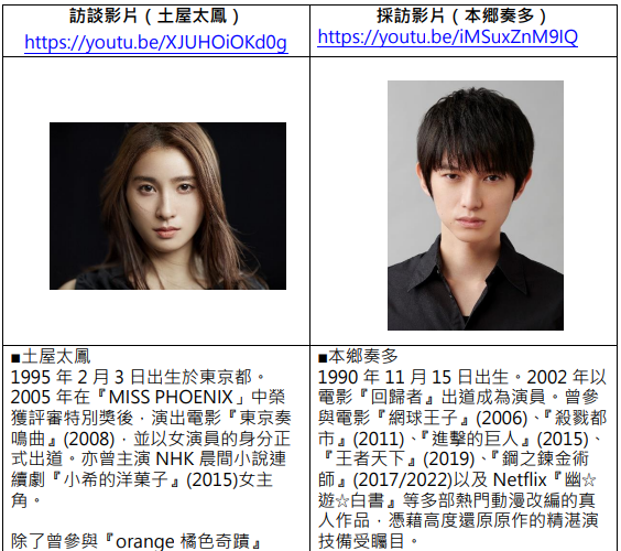 此外,本作特别邀请知名演员土屋太凤与本郷奏多参与演出,两人所饰演的角色一併亮相!