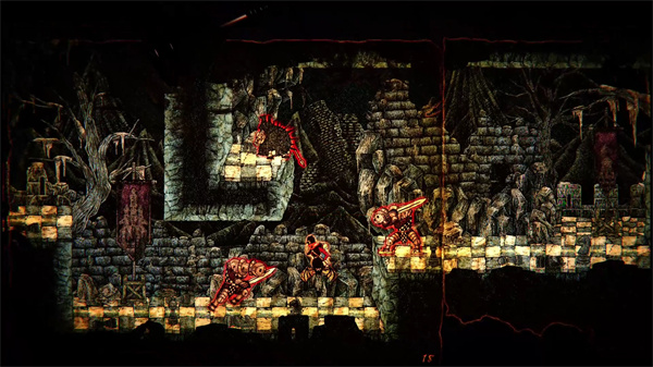 本作基于传统且有一定难度的2D平台跳跃玩法,在游戏进行过程中加入了诸如在墨水中移动这样极具冲击力的动作,以及其他一些使探索和战斗更有深度的独特动作,令游戏中的动作体验变得丰富多样。