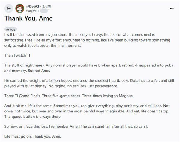 不仅仅是国内玩家,许多国外玩家也被Ame的经历打动。一位国外玩家就在论坛上这样写道: