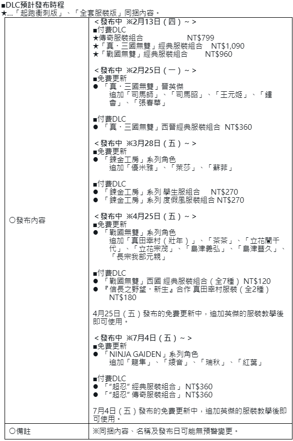 此外将发售『真・三国无双 起源』合作DLC。本合作DLC价格相当优惠,请先享受『无双深渊』本篇,一边等待合作DLC的发售吧。