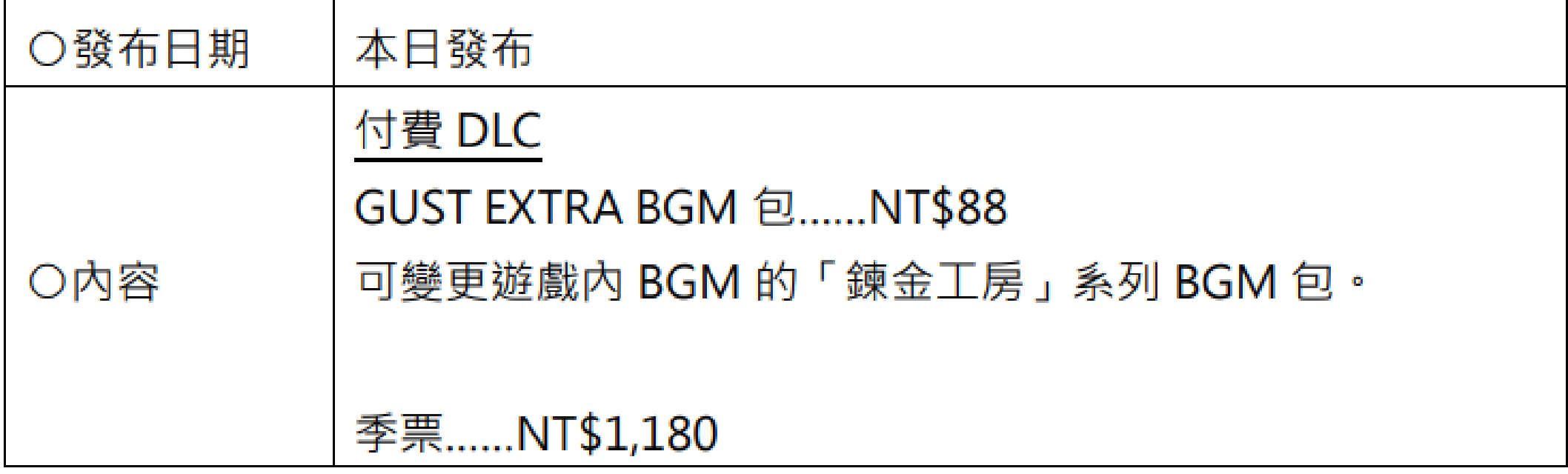 ※配方可于调合解锁后、BGM 可于保存选单的「变更 BGM」中使用。