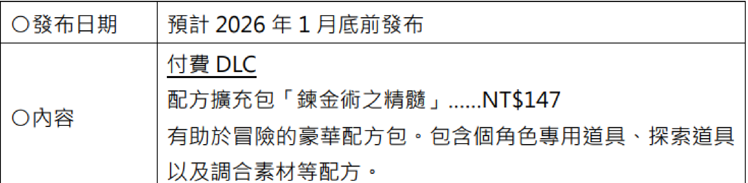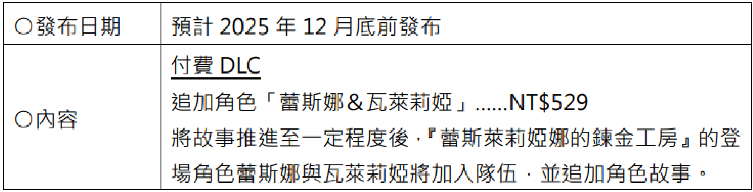 ●『红色的鍊金术士和白色的守护者 ~蕾斯莱莉娅娜的鍊金工房~』DLC 第 1弹概要