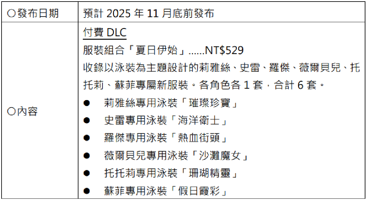 ※莉雅丝&史雷专用 先行发布服装「午夜套装」预定于日后免费发布。