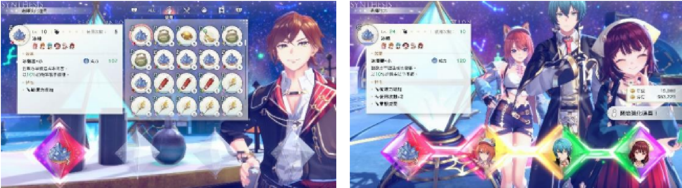 从队伍成员及妖精选择 3 人,一同协力製作出更厉害的道具吧!