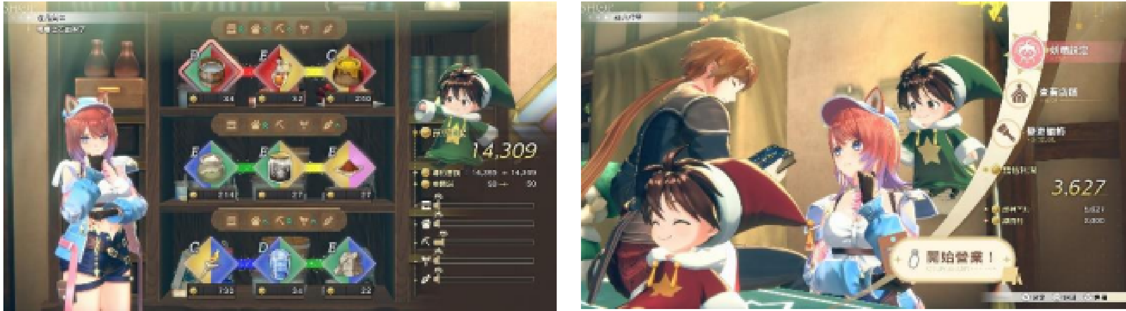除了富含战略性的时间线指令战斗、简单却深奥的调合等王道「鍊金工房」的系统之外,还融合了商店经营及随机迷宫等要素。