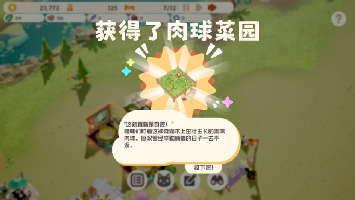 ●森林探险:派遣猫咪小队探索迷雾地图,挑战 15+ 支线任务,解锁稀有菜谱与建筑图纸,体验暖心故事。