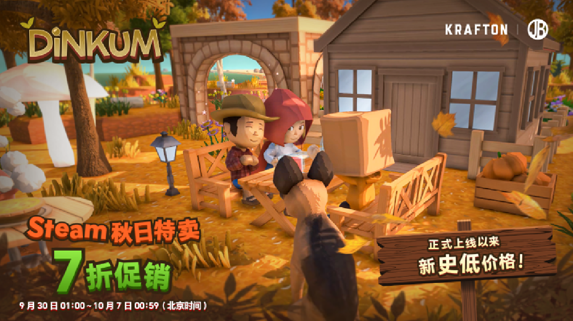KRAFTON今日宣布,旗下生存生活模拟游戏《金垦小镇》(Dinkum)将参与Steam秋季特卖。本次活动是该作在今年4月发售正式版本正式以来力度最大的一次折扣。