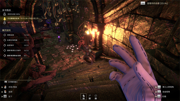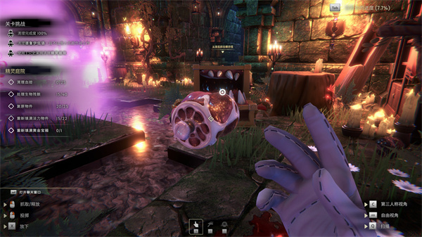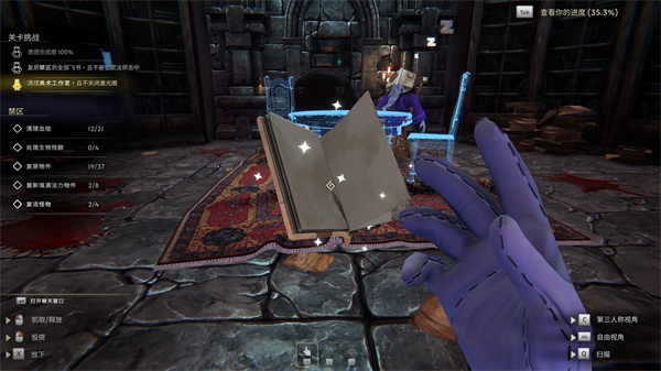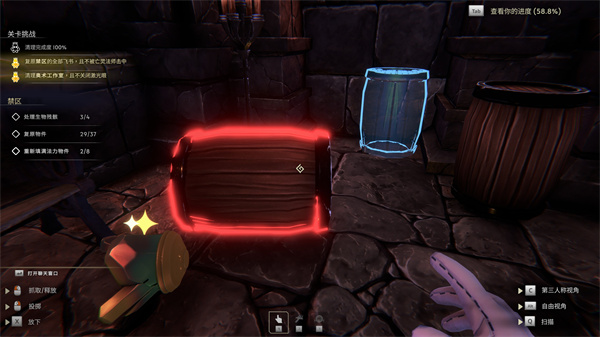 当然家具和魔力充能两者是有重合的,但这种物品一般不会通过探测来标记位置,因此我们更要留意的是一些物品身上会不会有紫色水晶,一般有这个就可以为其充能,第二关有个化的样子与我们能捡到的不一样,只要通过充能它就会变大,符合蓝色虚影的形态。