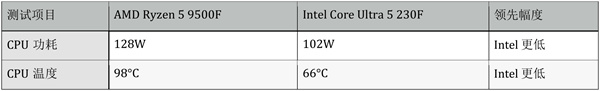 极限烤机场景下,Ultra 5 230F依然表现更加优秀,特别是温度控制上展现出优秀的能效比。
